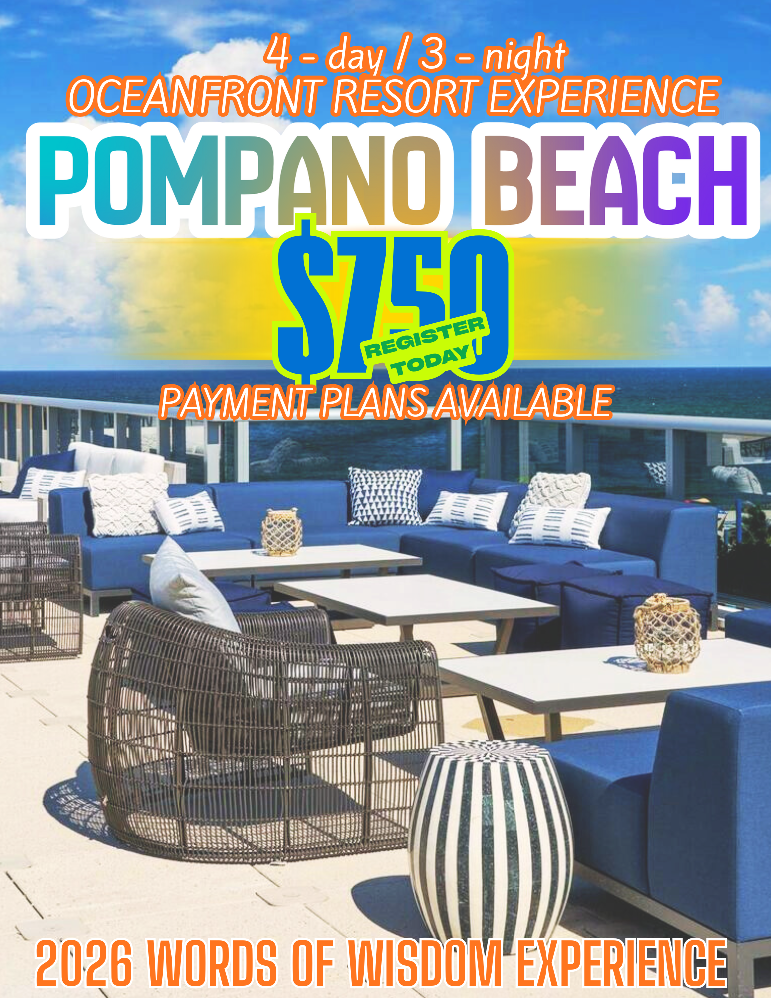 SUN — Action & Celebration Meditation & Mimosas/Mocktails (beachside) • Breakout intensives (money, wellness, boundaries, communication) • Masquerade Ball (evening)